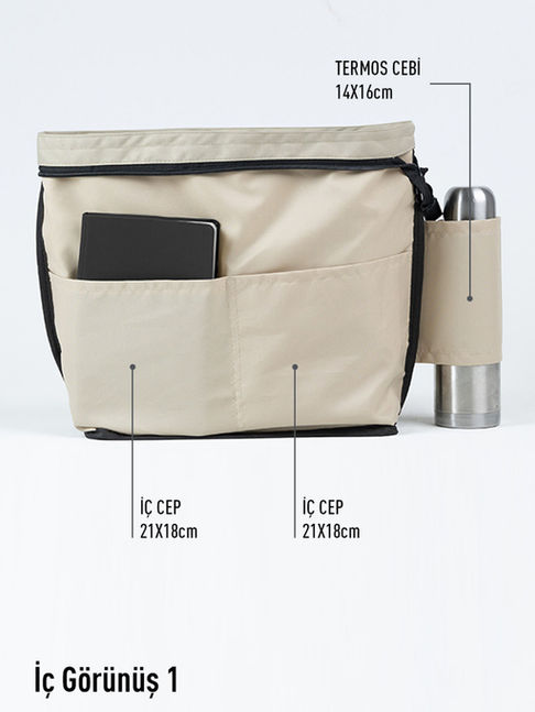 32x42 cm ölçüleriyle büyük boy modele göre daha kompakt ve hafiftir; günlük taşıma için idealdir. Çoklu bölmeleri sayesinde telefon, termos, defter, atıştırmalık ve küçük eşyalarınızı düzenli şekilde taşıyabilirsiniz. Su itici kumaşı sayesinde sıvılara karşı dayanıklıdır ve silinerek kolayca temizlenebilir.