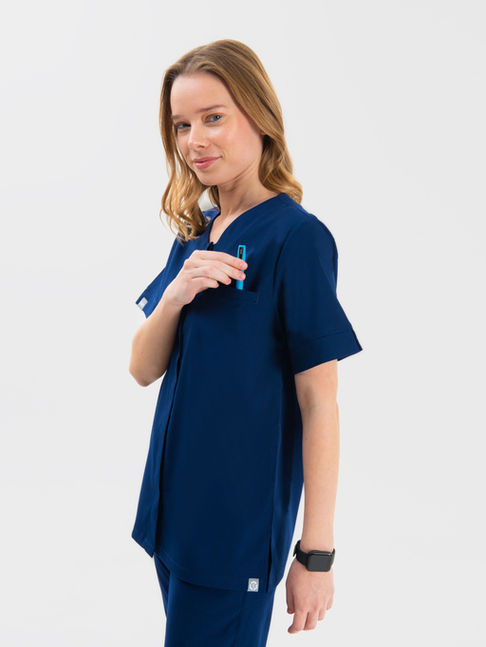 Likral ı ve esnek kumaştan üretilen Refresh kadın medikal üniforma takımı; hemşire forması ve scrubs olarak gün boyu konfor ve şıklık sunar.Gece mavisi tonu, modern ve zarif bir görünüm kazandırır.